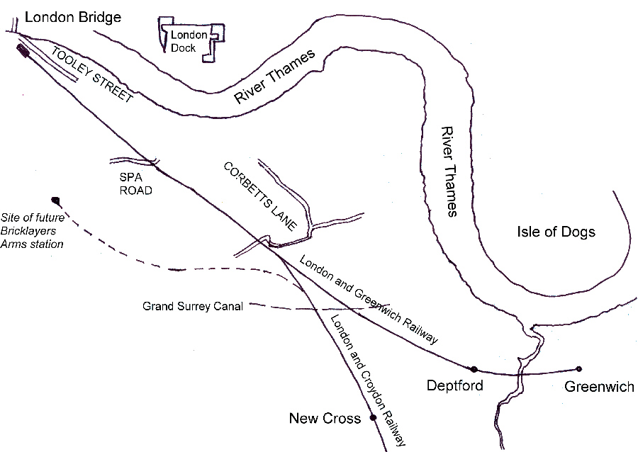 existing London and Greenwich Railway (L&GR) at Greenwich.