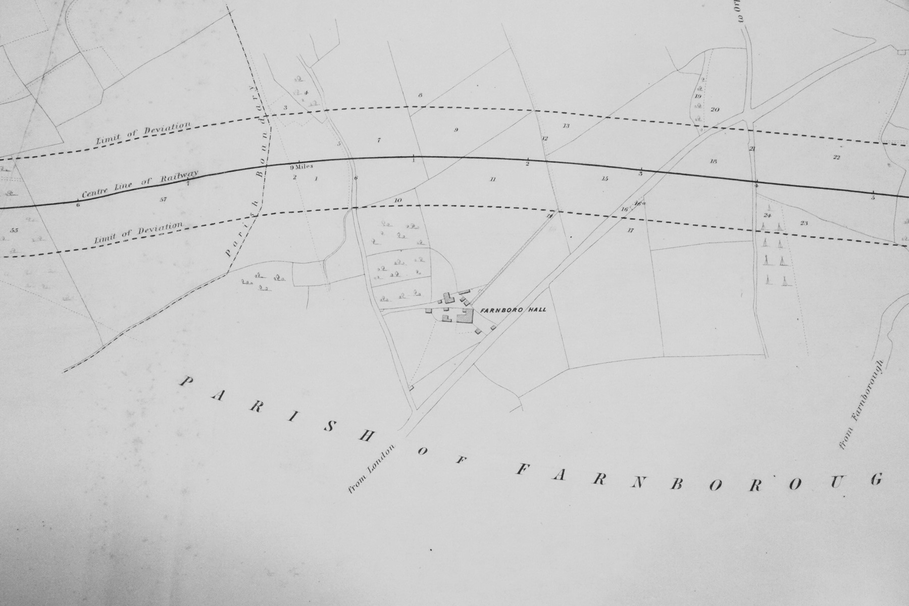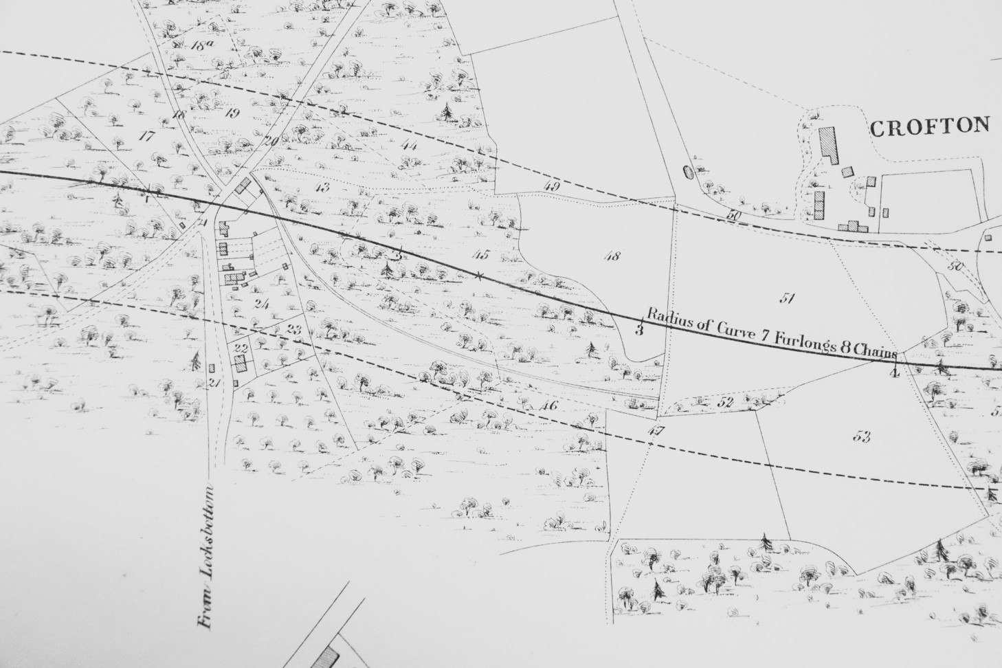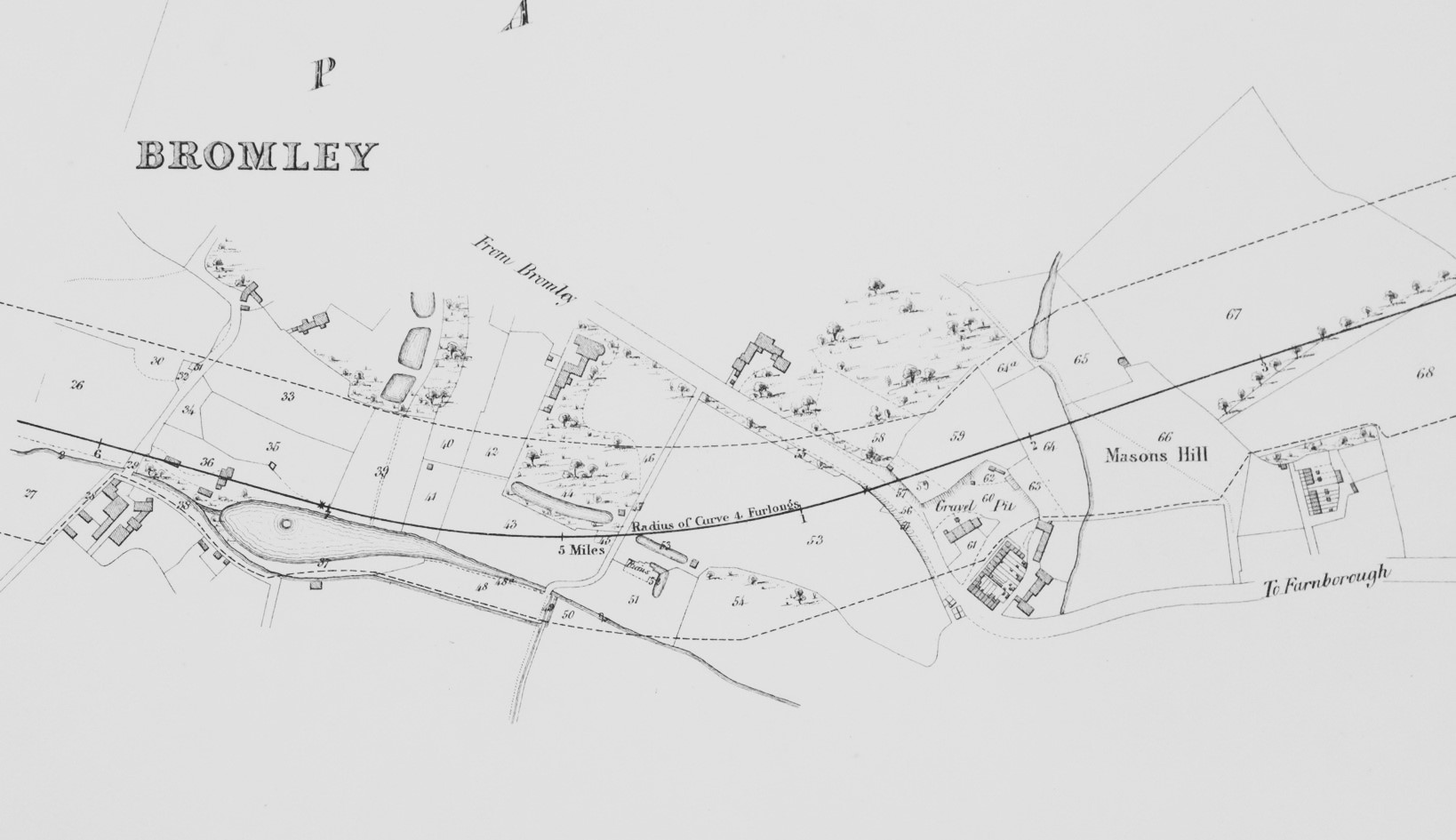 The first diagrams show the line passing through Bromley at about the location of the later Bromley South station, and then crossing Crofton Lane.