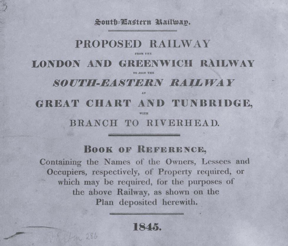 In 1845 the South Eastern had only just completed their main line from London to Dover via Redhill. Nevertheless they felt compelled to produce this proposal for a second and more direct route, passing through Farnborough.