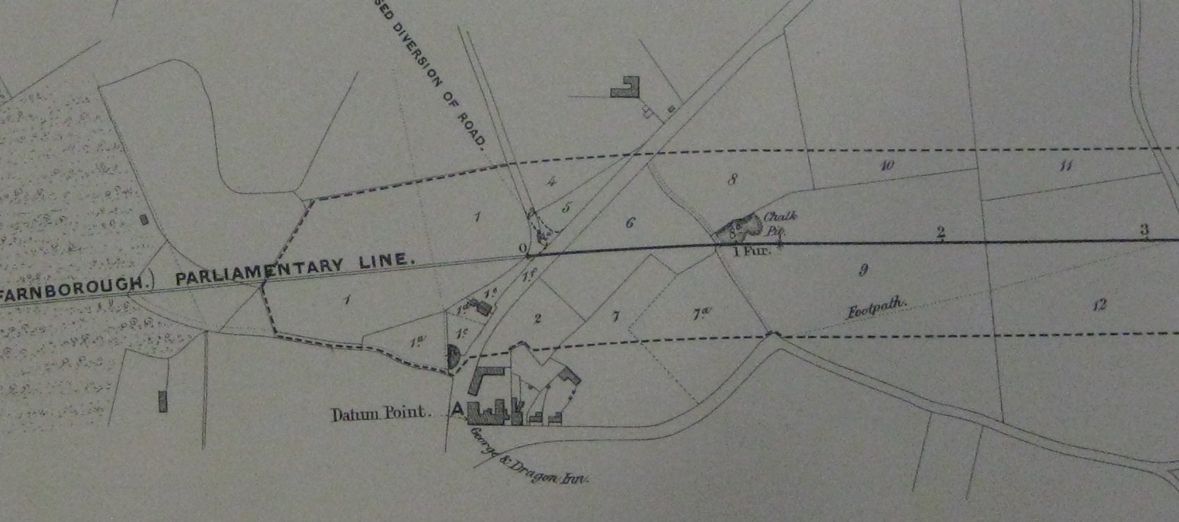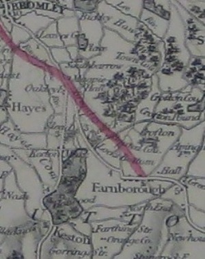 There was also a second Act, approved in 1856, authorising a further extension from Farnborough down to Ightham in Kent. The initial submission was in 1854 under the name 'London and Mid Kent', but it was then resubmitted in 1856 as an extension of the West End of London and Crystal Palace Railway'.The route is shown in the map below, with a second diagram, that shows more clearly the route to be taken through the village. The old George and Dragon Inn is clearly shown, as is a proposed minor diversion of Tubbenden Lane.