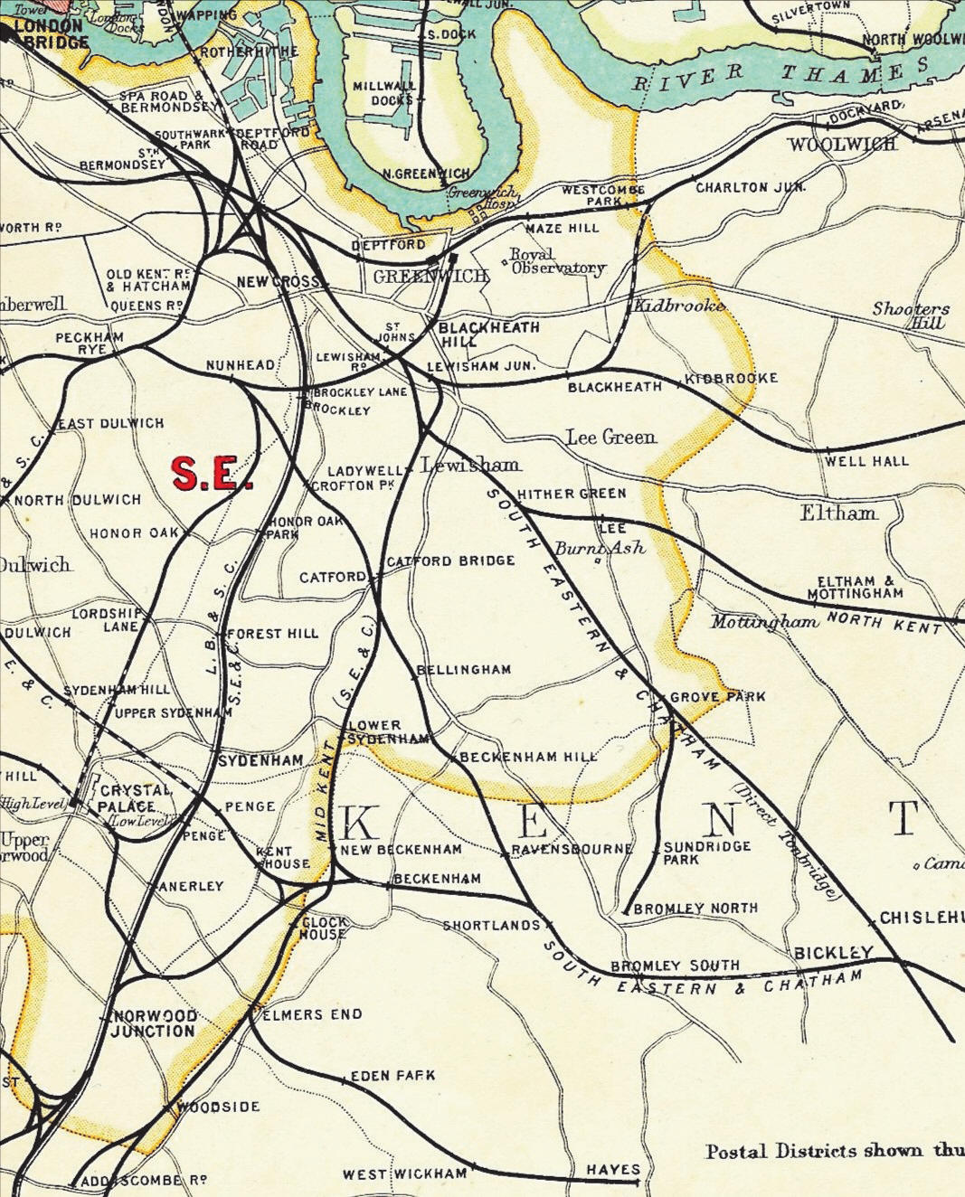 New lines since this map is the Elizabeth Line, the Docklands Light Railway link under the Thames from the Isle of Dogs to Lewisham and the Channel Tunnel Rail Link.