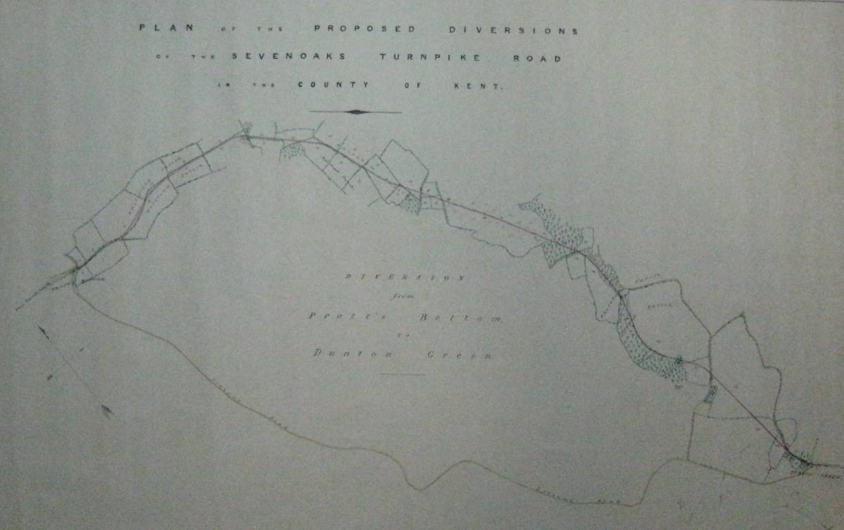 When the Turnpike was diverted in 1834 to run down Polhill rather than take the original route through Knockholt Village, one of the consequences was to cut off the access to the turnpike from Chevening House. This necessitated the provision of a branch road to provide a connection to the new route from the house and estate. This opened in 1835.