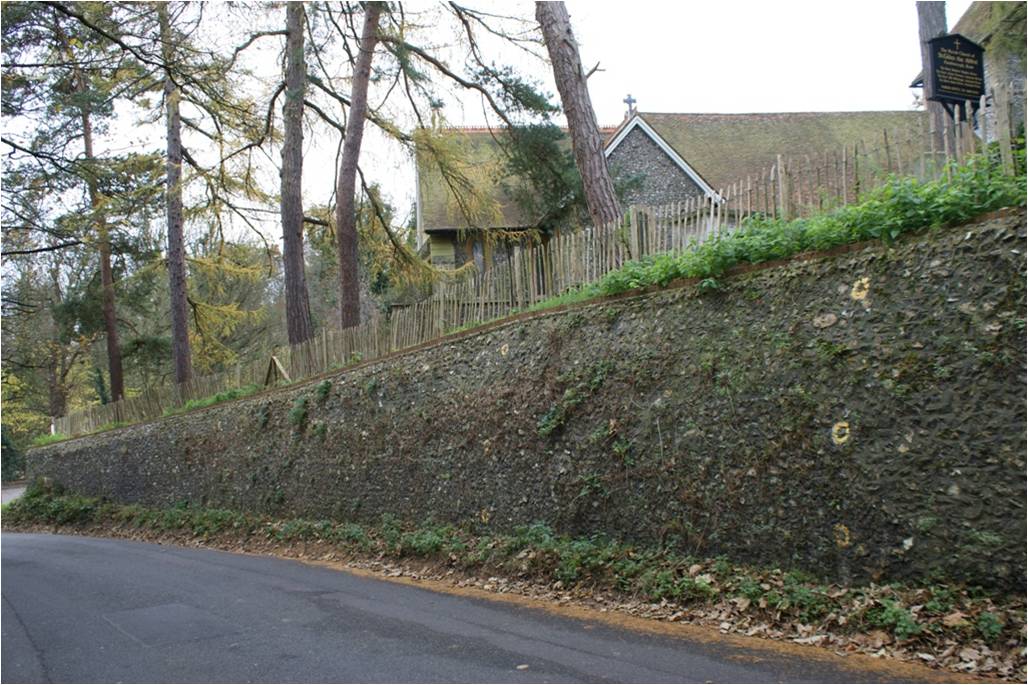Below the church it is difficult to make out the original ground level as there was later extraction of gravel from the ground at this location.
