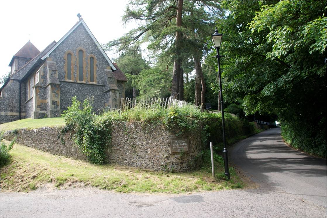 The lowering of the road led to the resiting of the two entrances to St. Giles churchyard. The original positions are indicated by two arrows pointing toward Church Road in the diagram above. Note that the main part of the churchyard did not exist at this time. It was added in phases as new land was acquired from the end of the nineteenth century.
